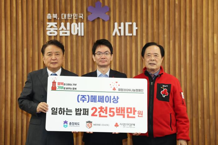 이날 기탁식에는 김영환 충북도지사, 김성현 ㈜메쎄이상 청주오스코사업단장, 이민성 충북사회복지공동모금회장 등이 참석했다.