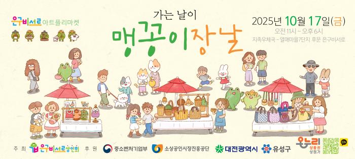 일부에서 ‘제4회 맹꽁이장날’ 행사를 개최한다.이번 행사는 지역 상권 활성화를 위해 은구비서로 상인회와 마을 주민이 함께 준비한 아트 플리마켓으로, 오전 11시부터 오후 6시까지